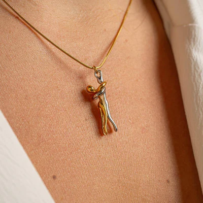 ✨ Diseño Exclusivo: Dos figuras entrelazadas en un abrazo eterno, representando el amor inquebrantable.